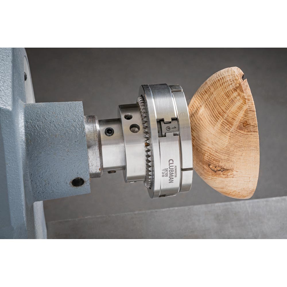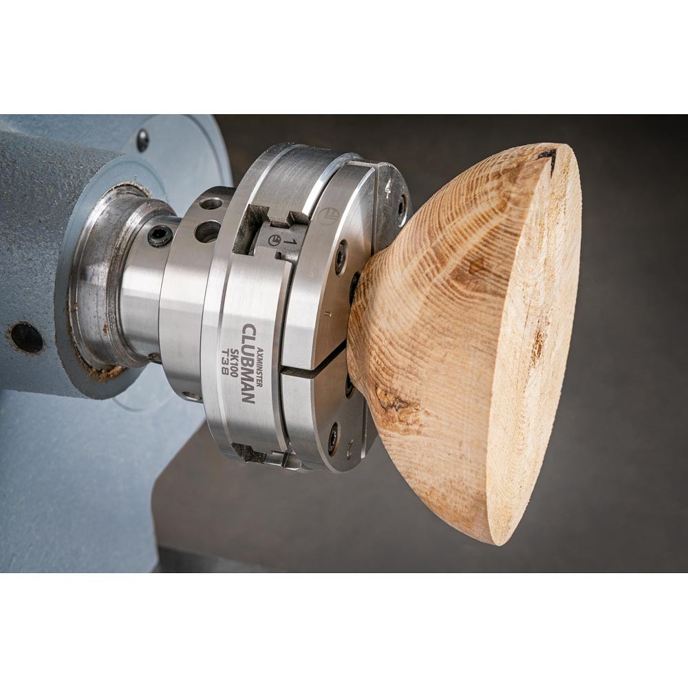 Diese kleinen Werkstückhaltebacken haben einen schwalbenschwanzförmigen Außenrand, der in eine Aussparung hineinragt, und eine glatte Bohrung, die an einem Zapfen angreift. Der Schwalbenschwanzdurchmesser beträgt 25 mm mit einer zentralen Bohrung von 12 mm. Die Schriftrolle eines Axminster-Spannfutters ermöglicht eine breite Variation. Dadurch können diese Backen einen Zapfen von 4 mm bis 24 mm greifen oder sich in eine Aussparung von 18 mm bis 36 mm ausdehnen. Bitte beachten Sie, dass bei dieser Variante der Griff bei größeren Durchmessern kein echter Kreis mehr ist.