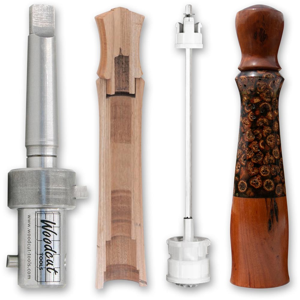 Der Woodcut MillDrill ™ wurde entwickelt, um die Herstellung von Pfeffermühlen, die den CrushGrind®-Mechanismus verwenden, einfacher und schneller zu machen. Es ist jedoch ein vielseitiges Werkzeug und kann mit einigen Anpassungen an den Fräsern zum Schneiden einer Vielzahl von Lochgrößen verwendet werden, wodurch der Kauf einer Reihe von Bohrern überflüssig wird. Es kann auch als Spannfutter für Bohrer und Forstnerbohrer mit 10-mm-Schaft dienen.