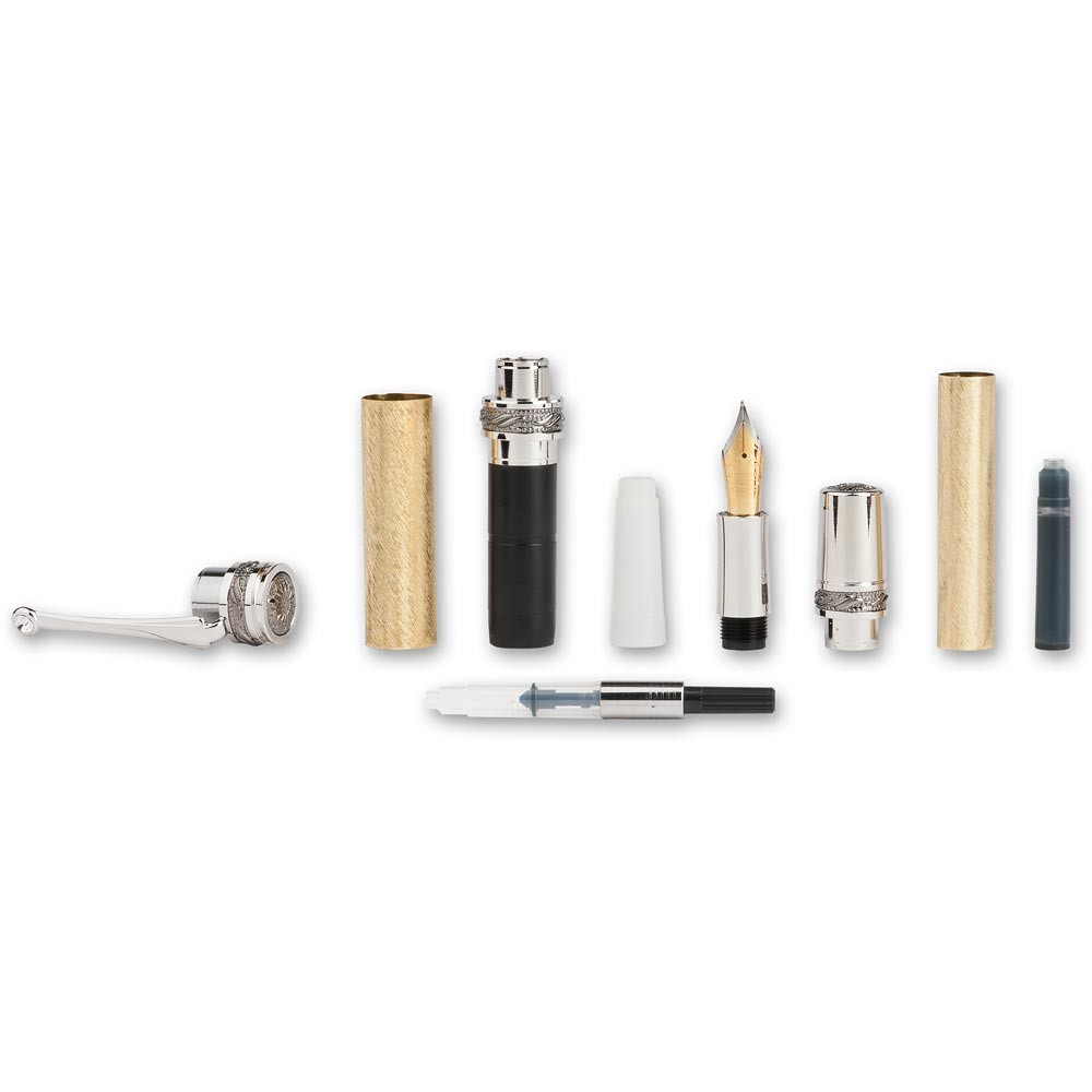 Die Majestic Pen-Kits enthalten viele bemerkenswerte Merkmale, darunter: einen rhodinierten Clip mit einem funkelnden Swarovski-Kristall. Die Komponenten werden gegossen, poliert und anschließend mit einer extrem haltbaren schwarzen Titanbeschichtung versehen. Die Rollerball-Baugruppe enthält eine hochwertige Schmidt-Stahlpatronen-Nachfüllung mit einer Keramikspitze, und der Füllfederhalter verfügt über eine rhodinierte Stiftspitze. Dies sind hochwertige Stiftsets, die sowohl den Hersteller als auch den Empfänger gleichermaßen begeistern werden. Wenn sie fertig sind, machen sie wirklich schöne Schreibgeräte. Erforderliche Bohrergrößen sind 37/64 "(502699) und 15/32" (502700). Ungefähre Rohlinggröße erforderlich 20 x 125 mm. Für Rollerball Nachfüllbestellung 340240.